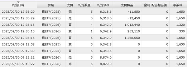 くりっく株3652026年銀売りー2025年銀買いのサヤ取りです。