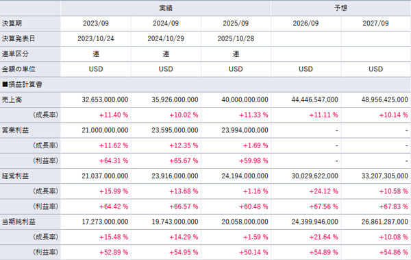 2025年10月時点 業績推移