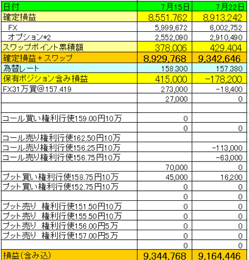 先週満期となったプット買いオプションで30万円くらいの利益が出たので、その分だけ全体の確定利益を押し上げてくれました。