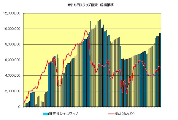 確定利益+スワップ合計が9,467,270円、含み損益込みだと4,974,900円です。